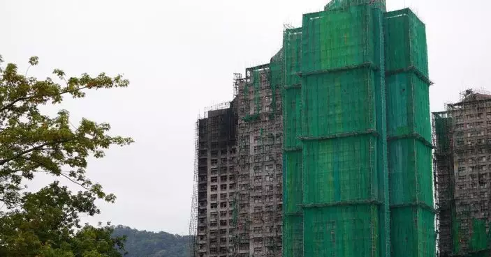大埔宏福苑外牆的棚網。巴士的報記者攝