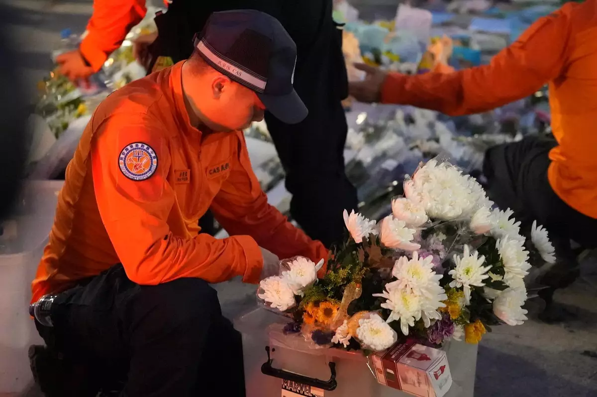 由於來獻花的人士很多,空地已變成一片花海,為了讓更多的人有空間來放下充滿心意的花束,民安隊大批成員到場整理花束,他們和警方協調後,先將部份花束移至封鎖線內不妨礙各部門工作的地方,又將花束堆叠整齊,騰出更大的空間,讓更多市民可以放下心意。
