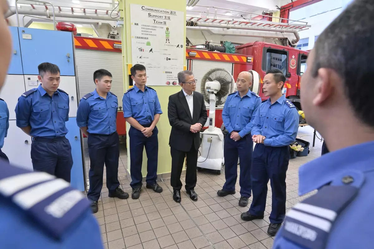 陳茂波亦到訪小瀝源消防局,向參與當日救災工作的消防員表達謝意。他強調,政府會全力照顧好殉職消防員何偉豪的家屬,為他們提供支持。