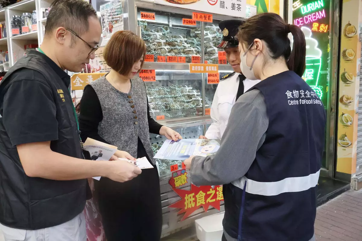 食環署與香港海關繼續巡查各區大閘蟹銷售處所。政府新聞處圖片