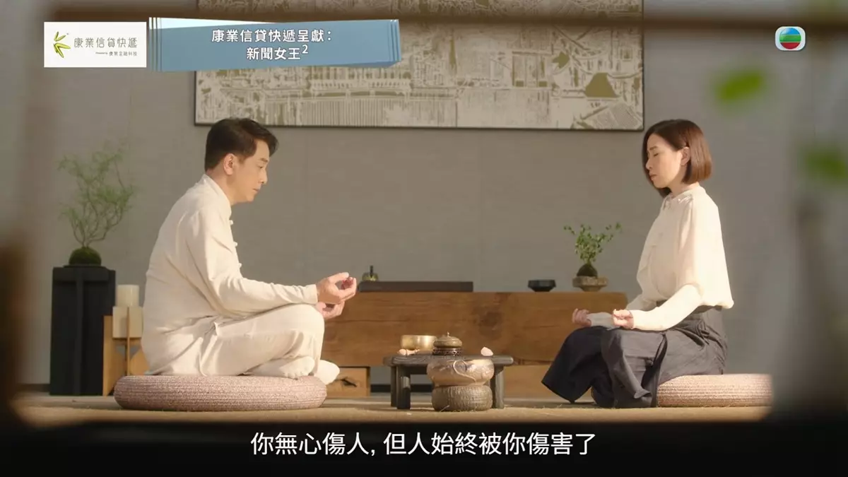 台慶劇《康業信貸快遞呈獻:新聞女王²》昨晚(12月2日)一集「晶耀學院」個案告一段落,原來Man姐(佘詩曼飾)信奉宏光大師、及幫學院帶風向洗白只是「假象」,Man姐真正目的是借故親近宏光大師(張松枝飾)並搜集其罪證。最終,Man姐與劉艷(王敏奕飾)等裏應外合,當眾揭破這個邪教大騙局…昨晚劇情的大反轉,令不少網民為之驚艷,不少留言直指被阿佘在晶耀學院內的「溫柔順從」又軟弱的精湛演技騙倒,有眼利網民更留意到阿佘在學院時刻意穿上色調柔和的衣服,來營造柔弱感,劇組及演員心思可見一斑。