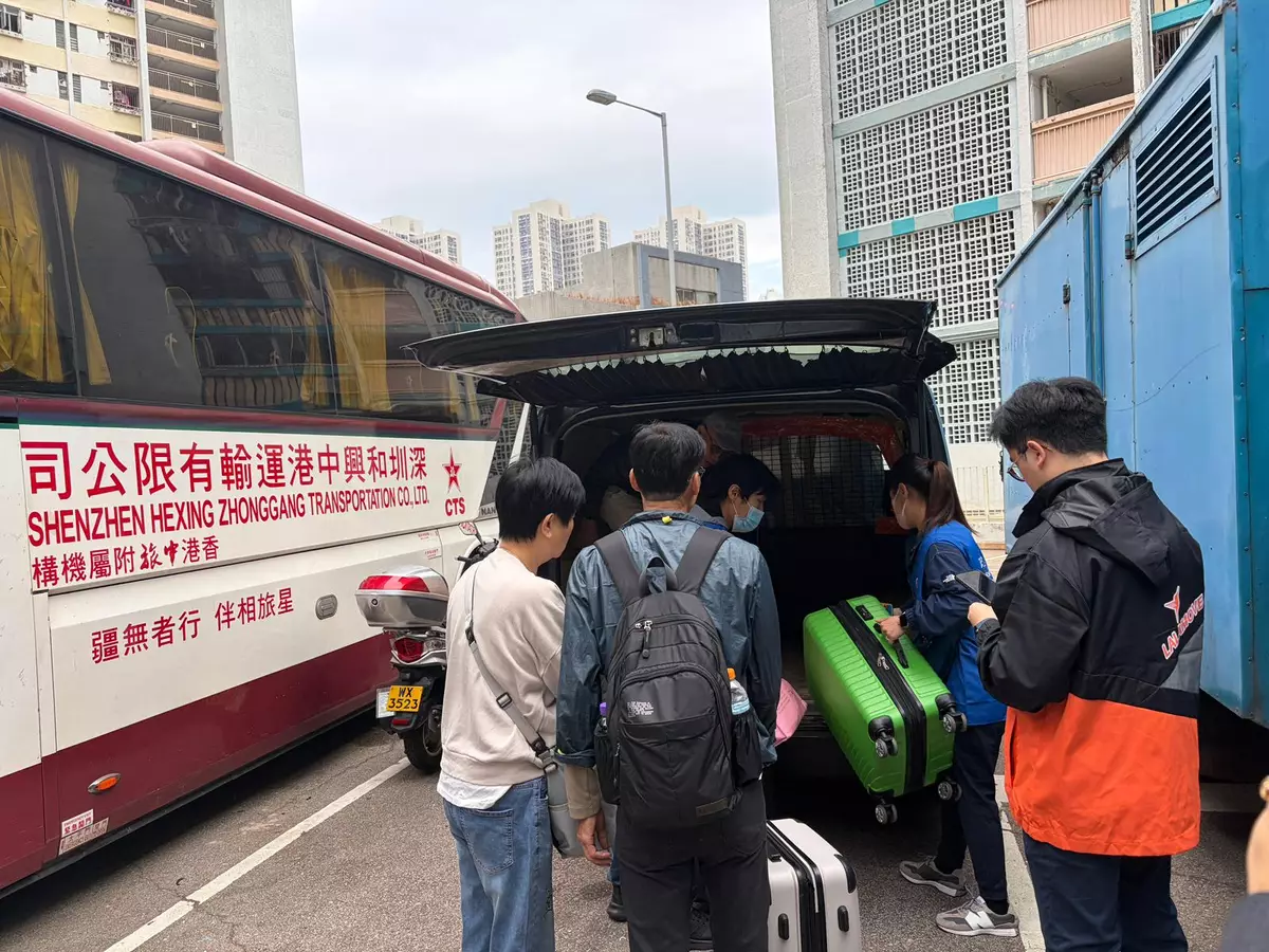 宏志閣居民叫客貨車送走細軟。巴士的報記者攝