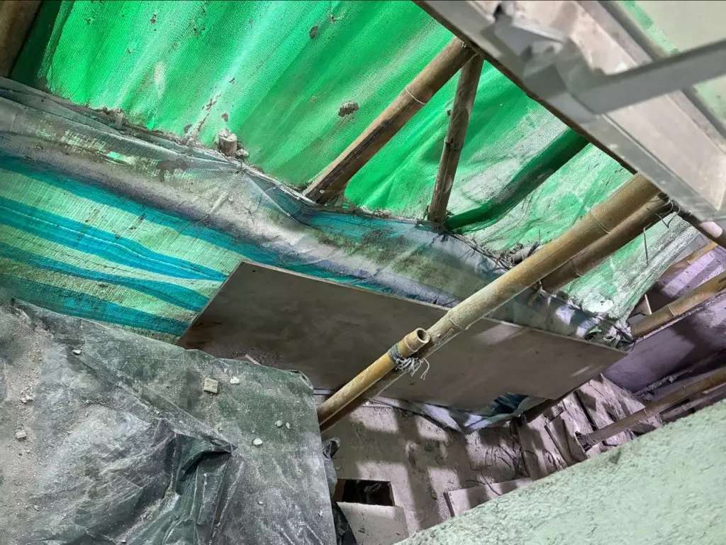 根據居民提供的照片,宏志閣內部的窗戶仍被封上發泡膠板,亦有部分發泡膠掉落在棚架位置。