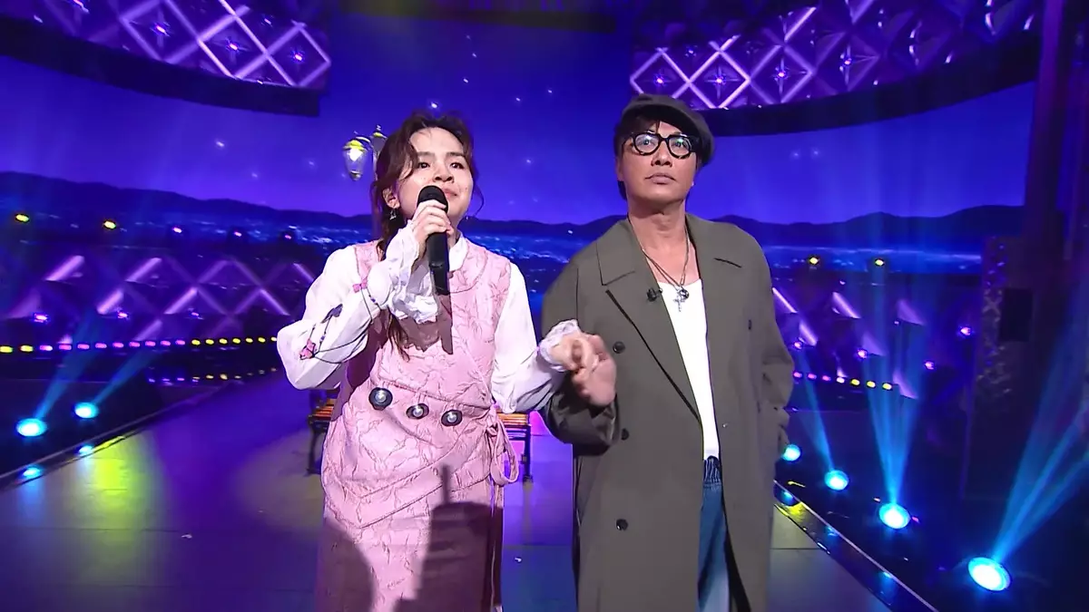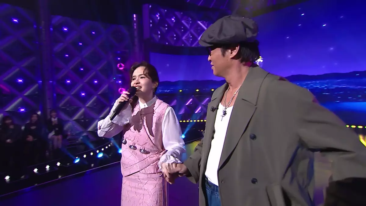 阿譚與《聲秀》學員胡港豐和布子殷先後合唱《霧之戀》與《高山低谷》。