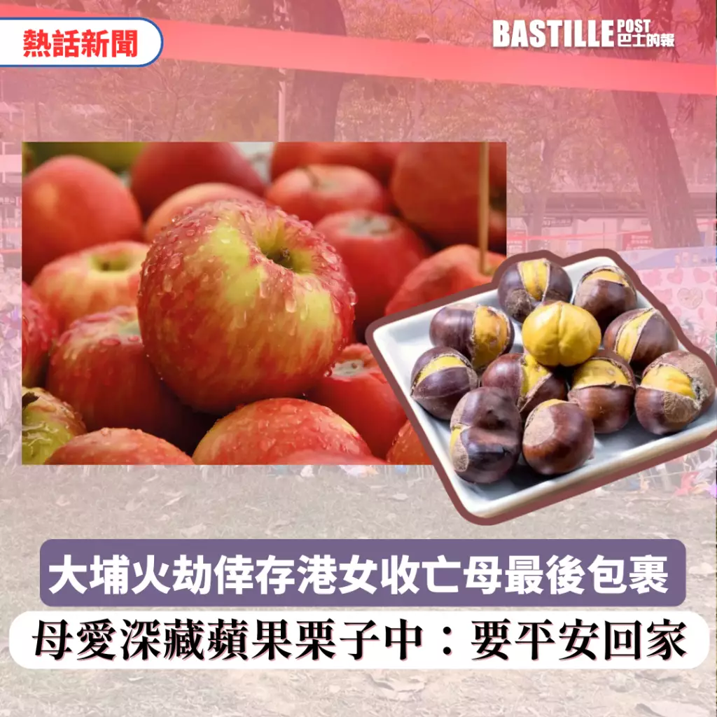大埔宏福苑五級大火燒毀無數家庭,一名女兒亦不幸與母親陰陽永隔。在確認母親離世消息前,她意外收到母親生前網購的最後一份包裹。拆開發現是蘋果與栗子,正是母親日常為她準備飲品湯水的材料,這份看似平凡的食材,卻被事主視為母親「以最溫暖方式送上的最後禮物」。