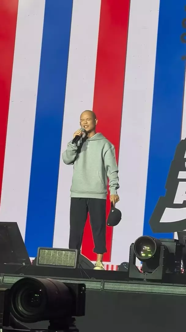 近年主力在內地發展的歌手側田,日前於韶關音樂節亮相,以實力唱功吸引樂迷。一向習慣戴帽演出的他,在台上與觀眾互動時,突然脫下鴨舌帽,大方展示光頭造型,更豁然笑言:「第一次嚟就畀你哋睇吓,其實呢啲嘢對我已經冇乜感覺,我已經中年喇!」隨即戴回帽子繼續獻唱,表現淡定。
