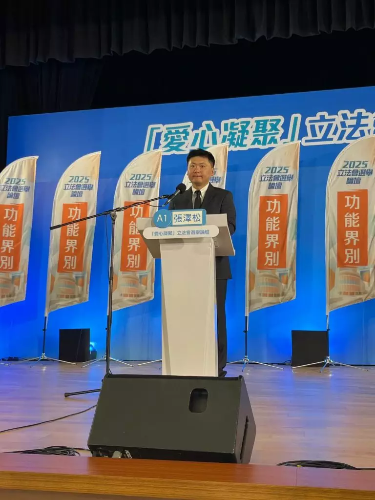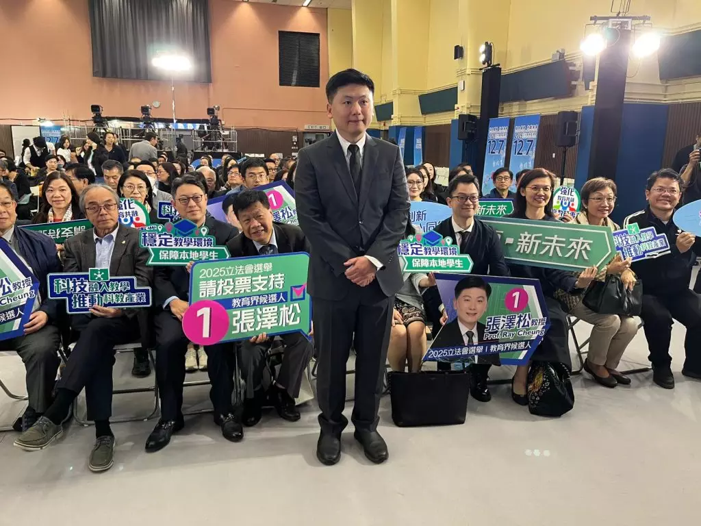 在個人及政綱介紹環節,1號候選人、城大協理副校長張澤松先向大埔火災災民表達哀悼,並指出事故反映社區關懷與社會安全網的重要性。若當選,他將推動大、中、小、幼及特殊教育之間的有效銜接與資源共享;保障教師權益,促進教育公平;推動科技創新融入教學;並強化教育共融與學生權益保障。