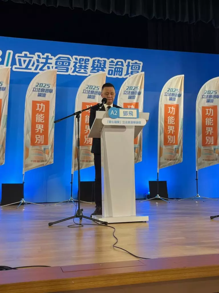鄧飛則指出,自己是少數同時具有選委界議員身份並參選功能組別的候選人,且大學階段修讀政治相關科目,因此在理論與實務經驗上均能勝任推廣中國香港特色民主優越性的工作。他建議可參考內地做法,例如安排外交官等國際人士參訪香港,近距離觀察立法會運作及會議過程,以實例展現香港的民主實踐。