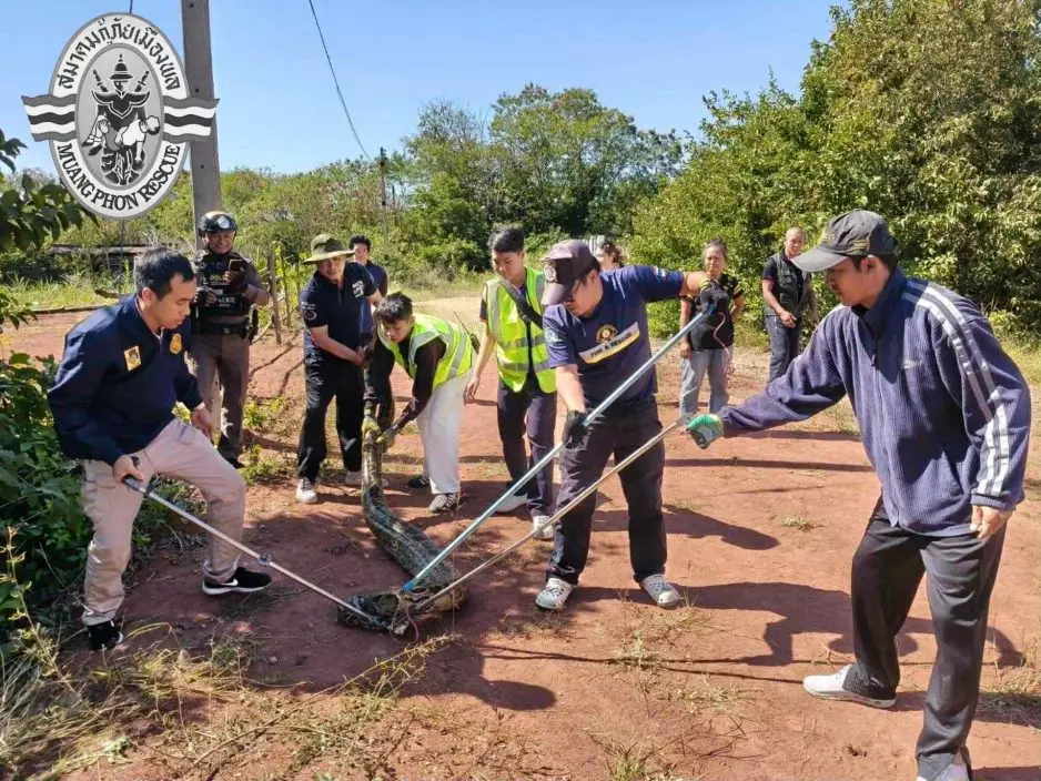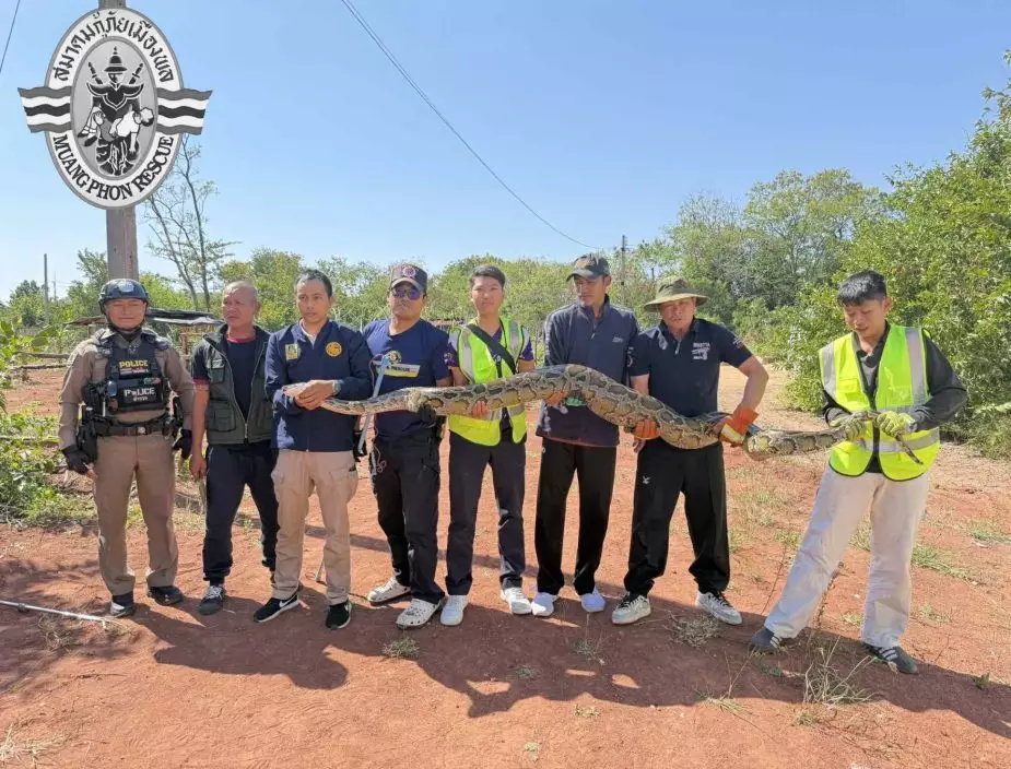 11月30日上午7時30分,泰國孔敬府(Khon Kaen)警方及救難隊接獲通報指,一條長約3米的巨蟒隱匿於一間酒店後方的林地。救難人員到場後發現,該蟒蛇疑剛吞食獵物,腹部明顯鼓脹。在察覺有人接近後,蟒蛇曾嘗試爬回洞穴,但因行動緩慢未能成功。