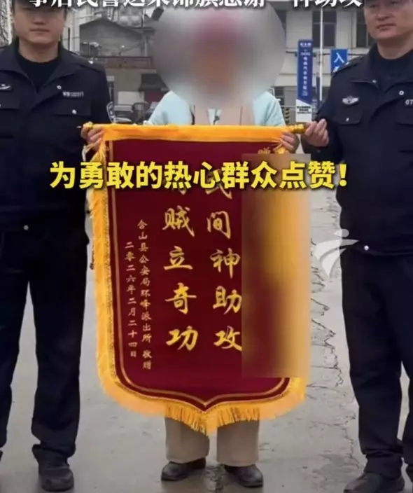 在熱心女子「神助攻」配合下,警方最終順利將疑犯拘捕歸案。過程中,警員一邊控制疑犯,一邊不忘關心女子有否受傷,所幸並無大礙。事後,警方特地向該名女子頒發一面錦旗,以表謝意及嘉許,上面寫有「民間神助攻,竊賊立奇功」等字句,讚揚她的英勇行為。