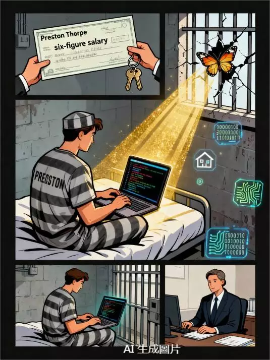 綜合 TechCrunch、Maine Public 及 NBC News 報道,32 歲囚犯普雷斯頓·索普(Preston Thorpe)自學編程後成為全美首批「獄中遙距員工」之一。他每日在囚室內工作約15至17小時,今年更獲三藩市一間科技公司聘任為高級軟件工程師,年薪達六位數美元(即逾78萬港元)。