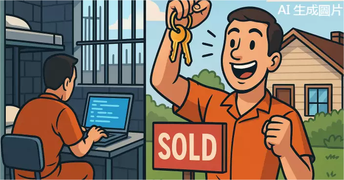 美國緬因州一名囚犯在囚室遙距工作成為高級工程師,年薪突破六位數美元並已成功置業。 AI 生成漫畫