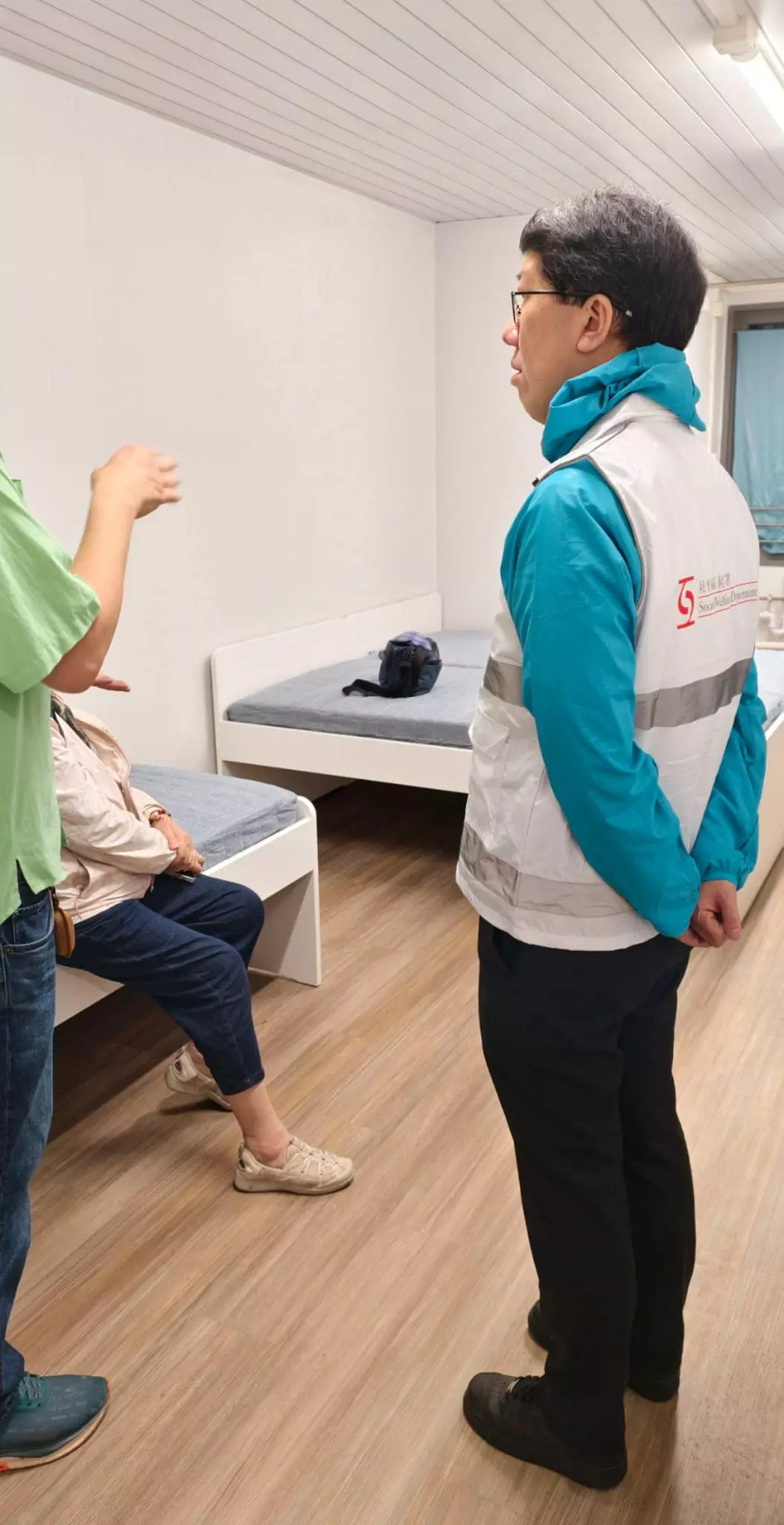 社會福利署署長杜永恒與團隊周四前往「博愛江夏圍村」,探望已入住過渡房屋的大埔宏福苑災民,送上由港鐵捐助、內有2000元額度的八達通卡,希望為他們日常出行與生活提供便利。