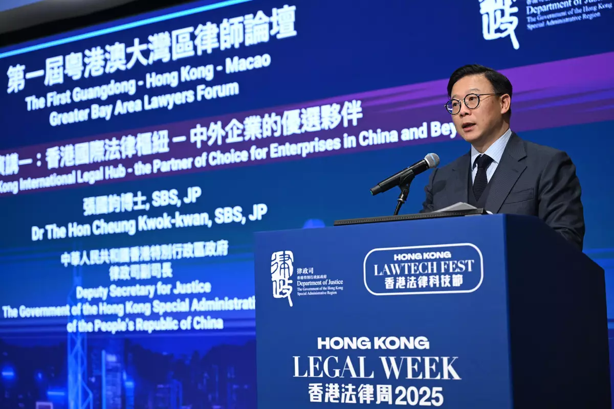 大灣區律師聯會的成立,落實了2024年施政報告的政策目標,也完成了律政司《粵港澳大灣區法治建設行動綱領》的一項重要任務。我必須感謝司法部和廣東省司法廳大力支持,及中國法律服務(香港)有限公司為此做的大量準備工作。期望聯會能凝聚香港大灣區律師力量,為制度恒常化創造有利條件,並為國家涉外法治建設作出貢獻。