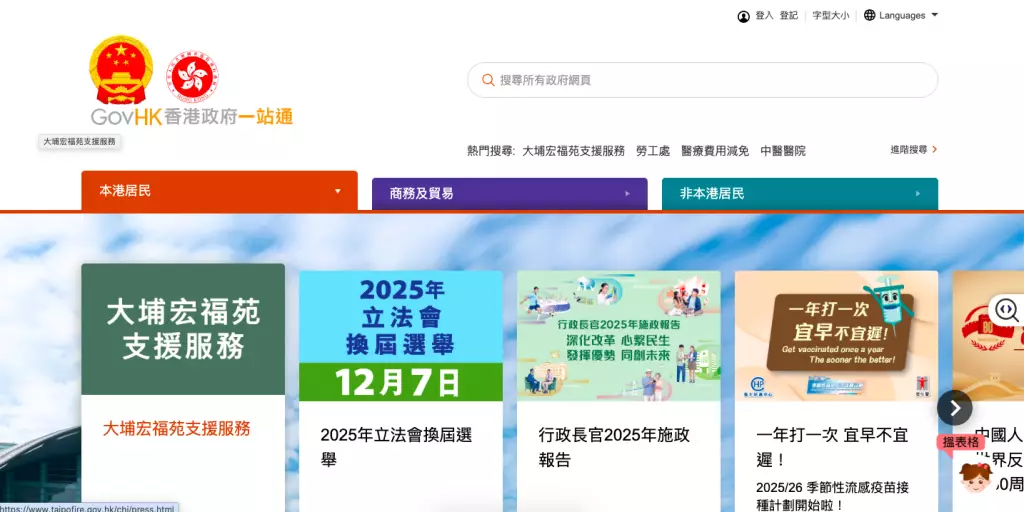 就大埔宏福苑火災,政府網站首頁轉為黑白誌哀的安排結束。午夜過後,政府的網頁和社交平台,已陸續回復至原有模樣。
