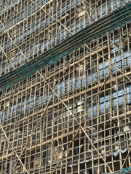 現場所見,穗禾苑有個別大廈的棚網已被拆除,亦有不少工人繼續在其餘幾座拆網。富林工程表示,已動員超過120名合資格棚架師傅分區同步拆除棚網,但穗禾苑地盤範圍廣闊,棚網面積約20萬平方米,加上大廈樓層較高及外牆面積龐大,所需時間較多。