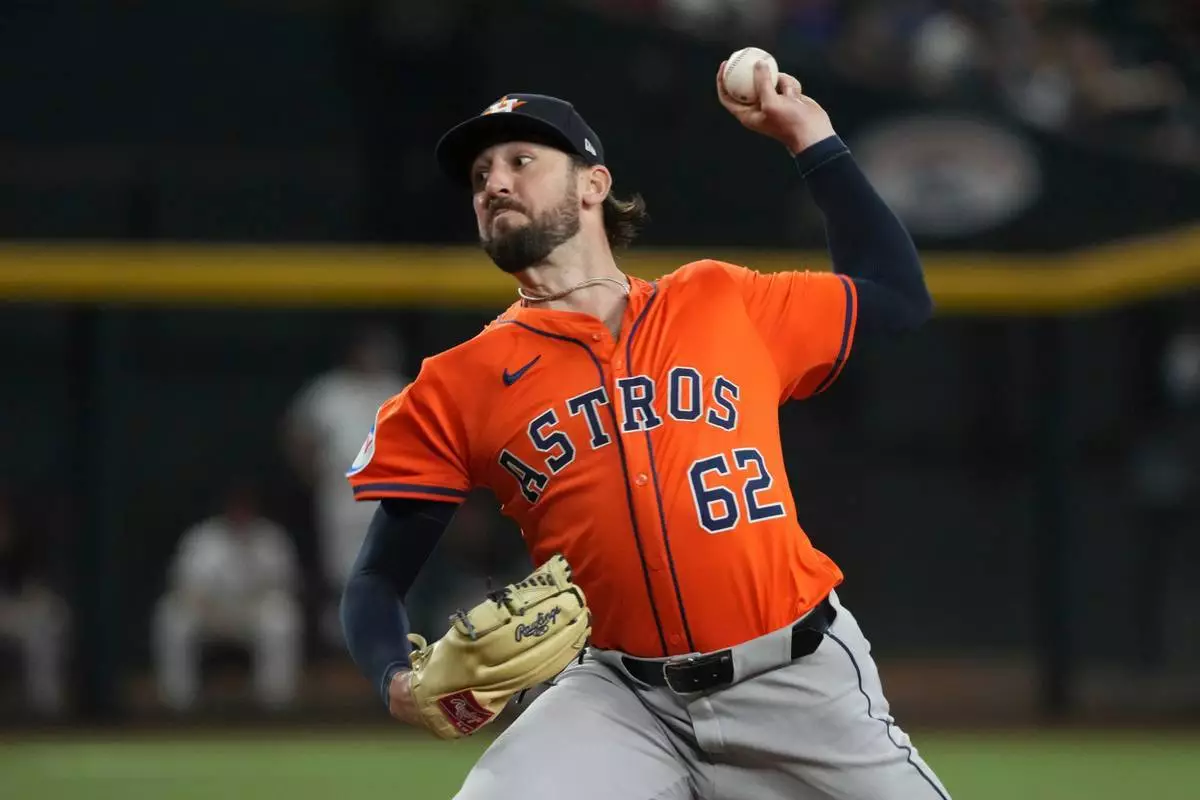檔案圖片:2025年7月23日,休斯頓太空人(Houston Astros)投手班尼特蘇沙(62號)在鳳凰城一場棒球比賽的首局對陣亞利桑那響尾蛇(Arizona Diamondbacks)。(美聯社圖片/Rick Scuteri) AP圖片