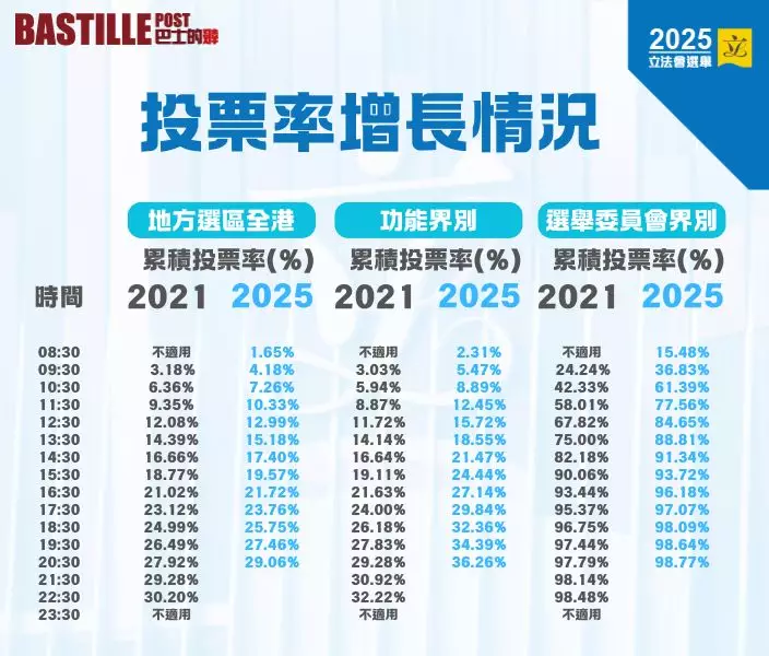 立法會換屆選舉12月7日舉行,投票已於當晚11時半結束。地方選區總投票率為31.9%,較上屆總投票率30.2%高出1.7個百分點。