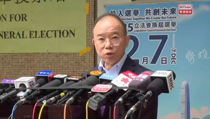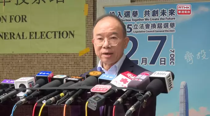 曾國衞到東區少年警訊會所投票。港台直播影片截圖