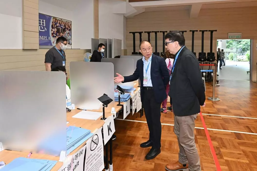 政制及內地事務局局長曾國衞(中)巡視票站。政制及內地事務局FB圖片