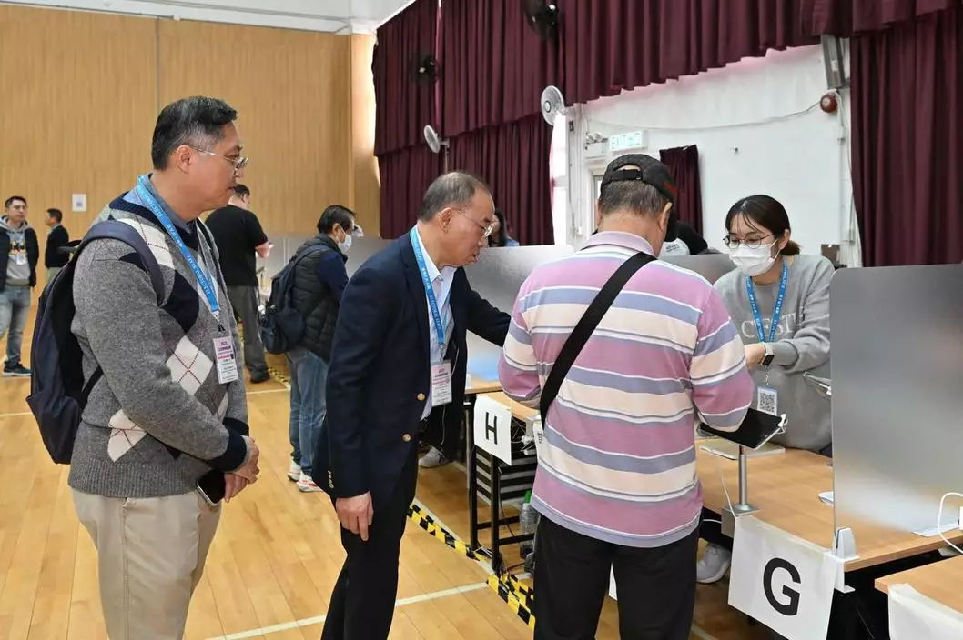 他亦巡視了兩個不同的專屬投票站,分別是位於沙田聖羅撒書院的醫院管理局醫護人員專屬投票站,以及位於香港警務處警察總部警政大樓的公務員專屬投