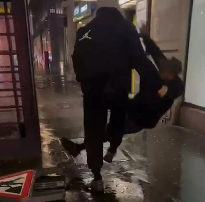 巴西柔術冠軍街道目擊色狼非禮未成年少女還打人挺身而出一腳制服對方。影片截圖