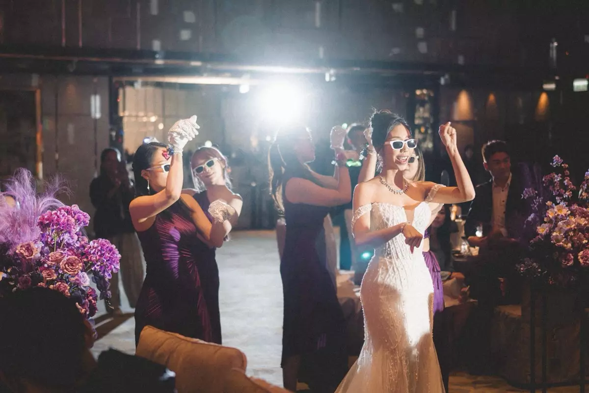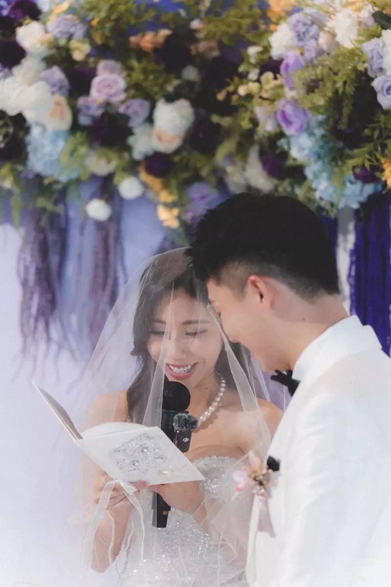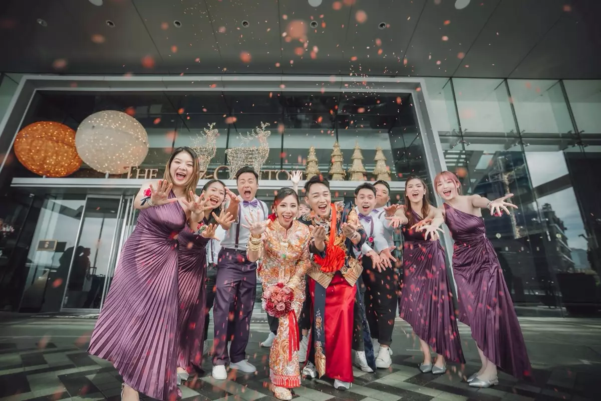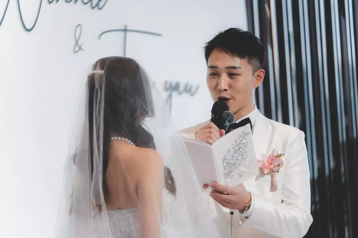 證婚及晚宴於酒店Diamond Ballroom延開23席,天佑邀請了多位圈中台前幕後好友出席婚宴。宴會開始前新人及兄弟姊妹以熱鬧跳舞形式進場,兄弟陳俊堅用兩星期為大家排舞,效果非常成功。在致辭時,天佑表示爸爸數月前中過兩次風,感恩而家爸爸在康復中,所以感受到珍惜當下既重要,祝願大家身體健康生活愉快。
