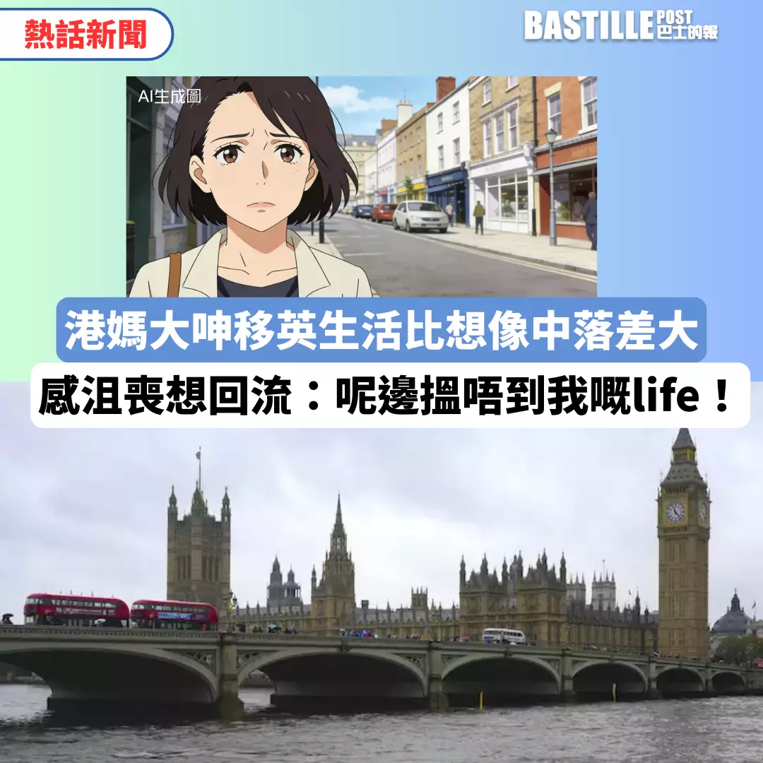 不少移英港人已在英國展開新生活,但至今有人歡喜有人愁。有移民英國4個幾月的港媽在社交平台發文,大呻自己覺得「無一日真正開心過。」直言英國的生活比她想像中的落差好大,更道出兩大慘況,更萌生回流的想法。