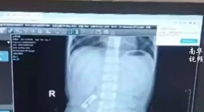 安徽1歲女童誤吞3cm髮夾年紀太小難做胃鏡,醫生建議食一物助成功排出。微博影片截圖
