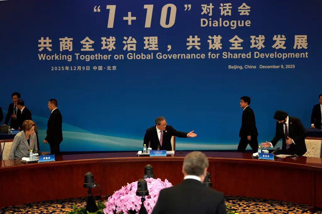 國務院總理李強在北京與十個國際經濟組織的負責人舉行「1+10」對話會。 AP圖片