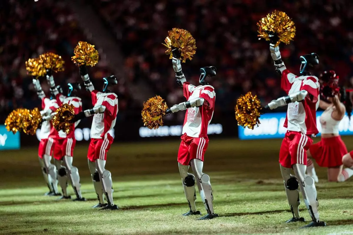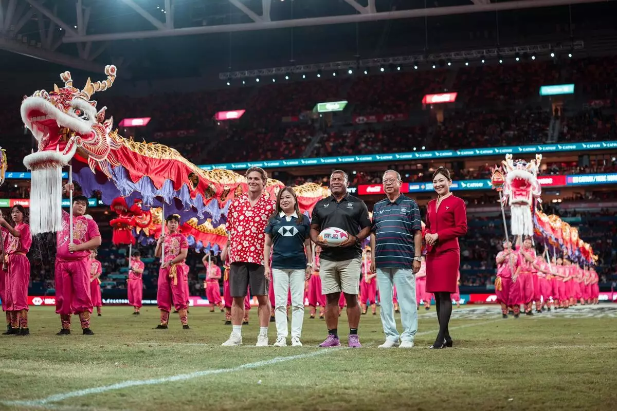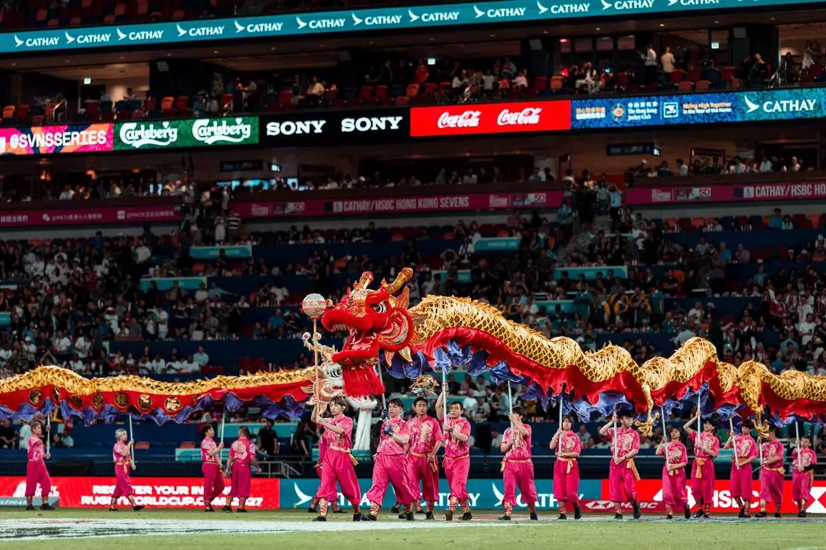 國泰/滙豐香港國際七人欖球賽(七欖)今年踏入50周年,香港旅遊發展局(旅發局)透過「Hong Kong Mega 8」平台串聯一系列盛事,旅發局獲中央廣電總台相助,邀請曾於央視春晚表演的國產機械人來港,與真人啦啦隊同台演出。