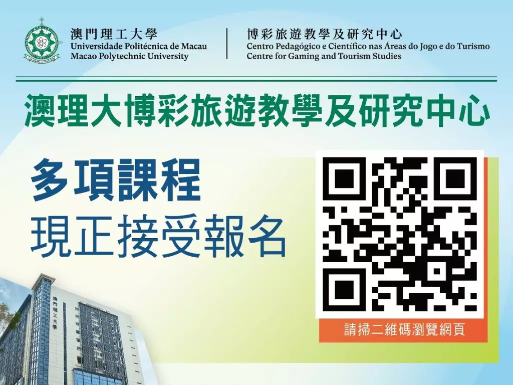 為積極推動澳門特區政府高水平人才高地建設及發展政策,加強澳門作為世界休閒旅遊中心的整體競爭力,澳門理工大學博彩旅遊教學及研究中心持續向公眾及業界從業人員推出多項專業培訓課程,歡迎有興趣人士報名。
