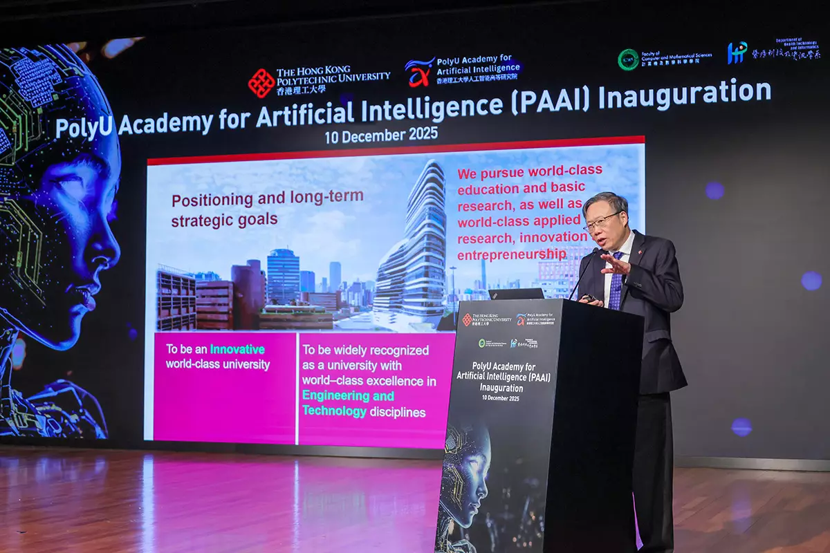 滕錦光教授闡釋:「理大於AI、計算機科學、數學、數據科學及其他備受全球認可學科建立了穩固基礎,PAAI將運用此優勢,促進跨學科與國際合作,推動 AI 發展,將香港與粵港澳大灣區定位為領先的 AI 創新樞紐。這所高等研究院將為醫療健康、金融以至教育等不同重點領域,提供可持續、高效且具影響力的解決方案,並善用香港的國際化科研環境及其政產學研網絡,構建人才培養生態系統,推動未來創新。」
