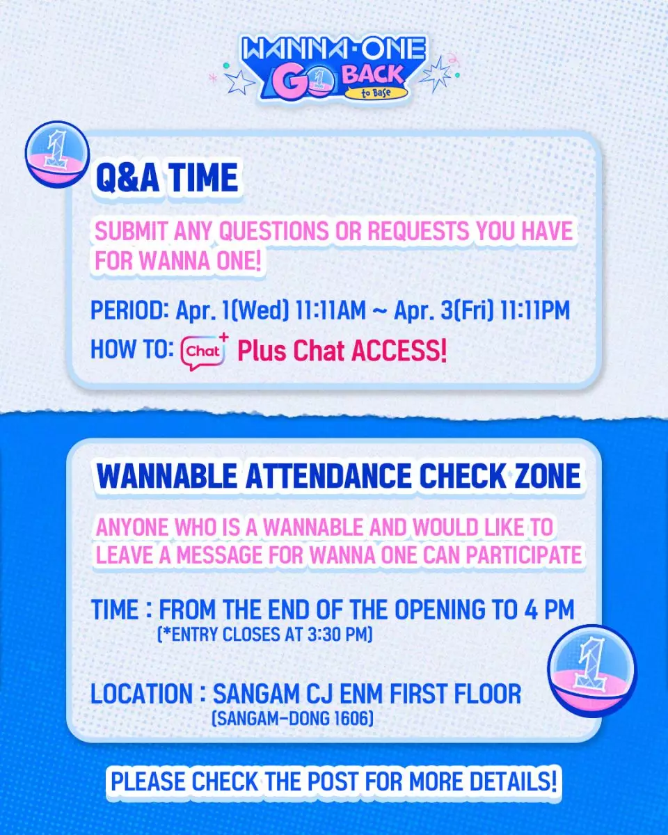 除了開幕儀式外,主辦方也準備了粉絲參與型環節。4月1日至 3日將開放「Q&A TIME」表單,粉絲可向Wanna One 提交想問的問題或請求,內容預計將應用於開幕儀式及後續播出的節目中。開幕儀式結束後,還將開放「Wannable出勤打卡區」,讓粉絲能在上岩 CJ ENM 總部大樓1樓親自留下訊息並遞交粉絲信,參與者可獲得限量節目海報貼紙,活動將持續至當日下午 4時。