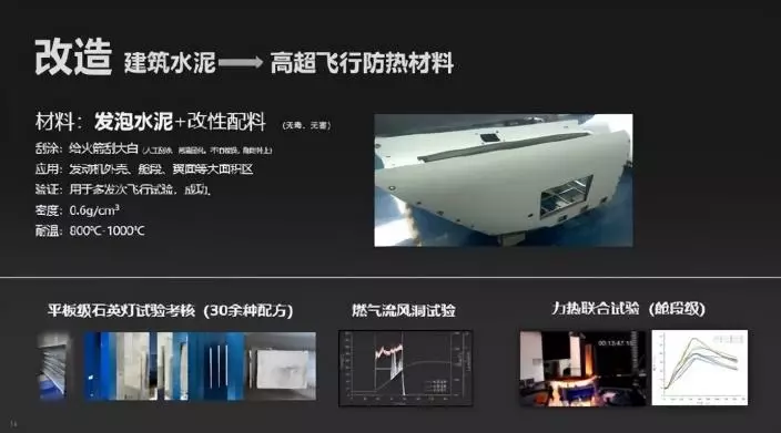 研發團隊展示以發泡水泥改良而成的防熱材料,以及相關測試畫面。