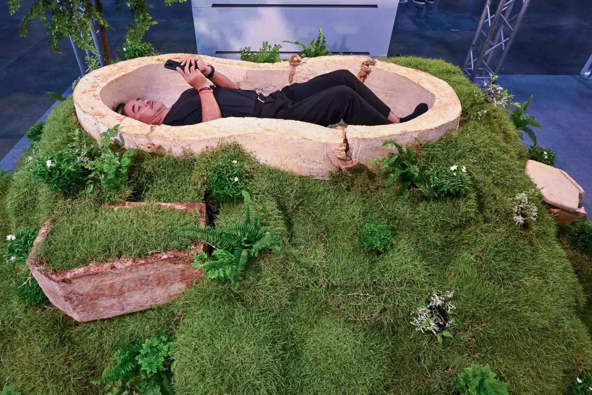 有一間公司展示了由菌絲體(mycelium,真菌的根狀纖維)製成的可生物降解棺材,有助於自然分解。