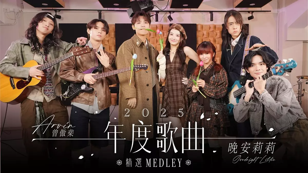 去年曾傲棐(Arvin)跟女團Lolly Talk成員Sinnie合作年度Medley,影片上架後,即一度停留Youtube熱門音樂影片二十大。今年Arvin再下一城,他的「年度歌曲精選Medley」企劃,找來今年殺入「叱咤2025我最喜愛組合」五強之一的樂隊「晚安莉莉」一齊玩,將2025年的年度歌曲一次過大晒冷!