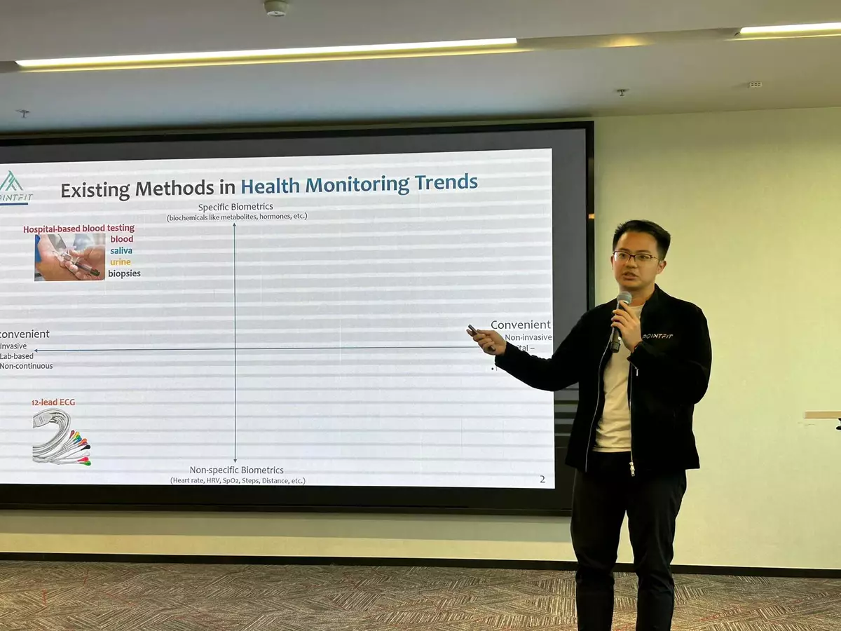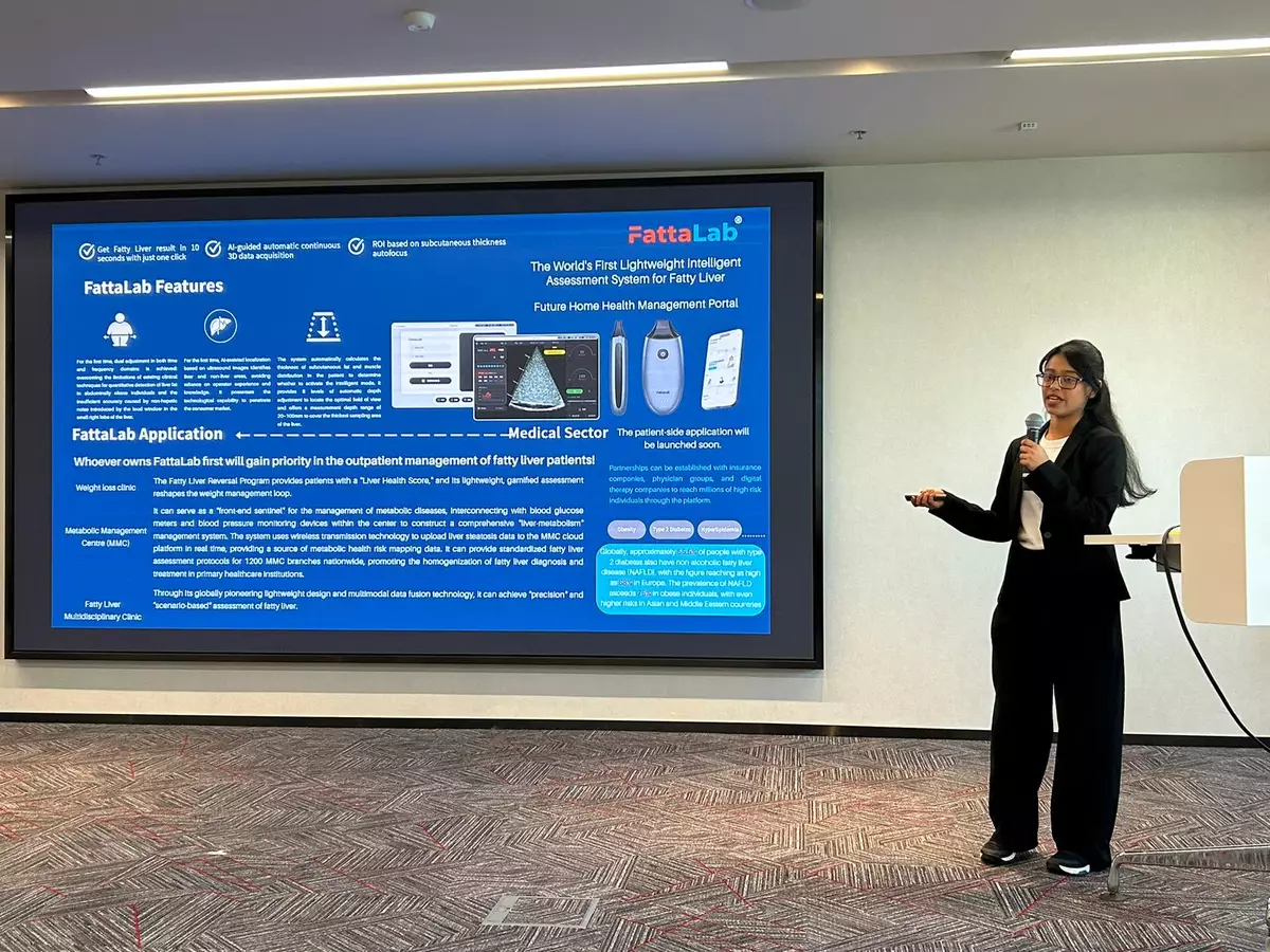 意領科技有限公司(Eieling Technology Limited)研發的「FattaLab®️肝臟脂肪測量儀」是全球首創便攜式脂肪肝智能檢測系統 ,於「數碼健康」組別獲獎。該系統約30秒完成醫療級肝臟評估, 加速早期篩查與臨床決策。商務專員Nur Nashita表示,產品當前聚焦健身房、醫療機構、小公司,未來會推向家用市場。配備平板或移動設備,在AI引導下,非專業人士也能看懂肝臟圖像、檢測脂肪肝比率及相關指標。