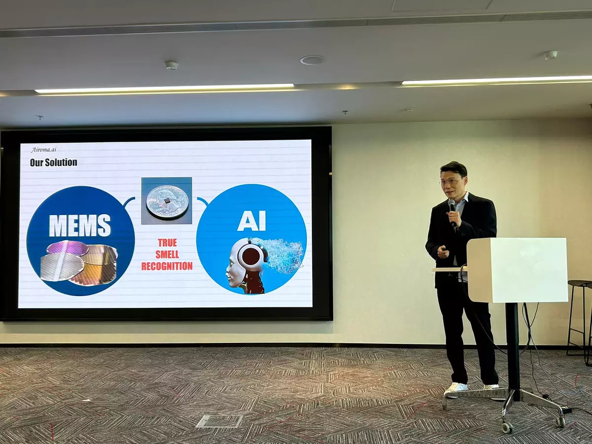 Airoma.ai研發人工智能「電子鼻」,結合微機電系統(MEMS)技術與人工智能,把氣味數碼化,將氣味識別技術帶入日常應用,總經理王國聰表示,Airoma.ai是半導體芯片和AI公司,開發嗅覺系統並將其集成於5mm x 5mm的半導體芯片上,精準識別不同氣味,可用於環境監測、醫療應用等方面。