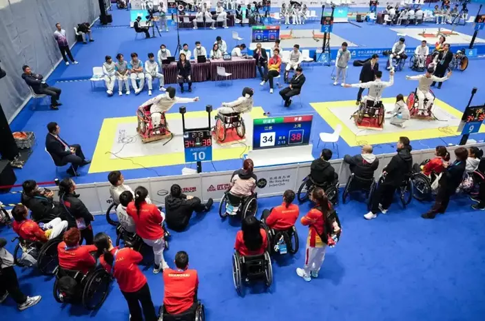 在馬鞍山體育館上演的輪椅劍擊賽事,港隊在男子花劍團體比賽,兵分兩路競逐,同樣無緣晉級四強。