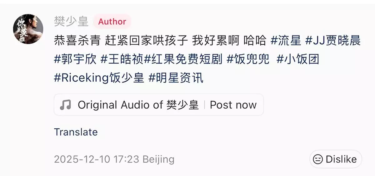 樊少皇亦拍片送上祝賀,又急急催促太太快返屋企救援