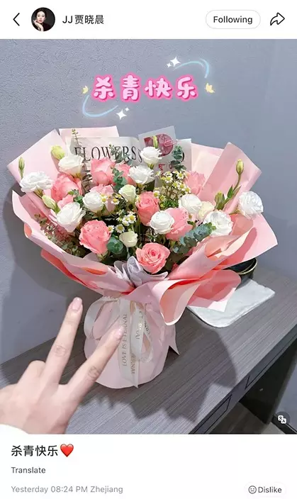 早前 JJ 新戲完成拍攝,她在社交平台上載手捧花束的照片,並寫下「殺青快樂」