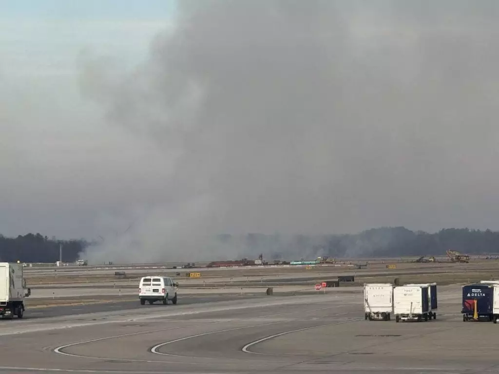 客機起飛時引燃了跑道附近的一些灌木叢,目前火勢已被撲滅。X圖片
