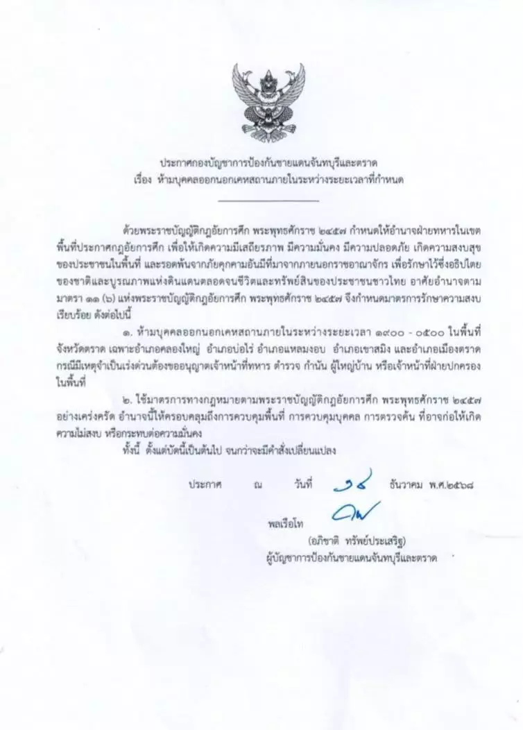 泰國與柬埔寨的邊境衝突未見緩和跡象,泰國軍方宣布在東南部沿海的達叻府部分地區實施宵禁。