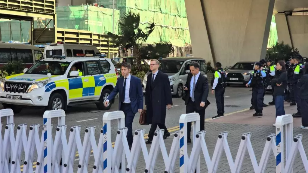 今早上7時許,載着黎智英的囚車已抵達西九龍法院,警方在法院一帶加強戒備, 多名警員在法院外駐守,出動「劍齒虎」裝甲車及多輛警車。在西九龍法院外,有過百人輪候入庭旁聽,包括多名外國駐港領事館職員。案件亦吸引大量中外傳媒採訪。黎智英的妻兒及天主教香港教區榮休主教陳日君樞機則於9時半一同到庭。