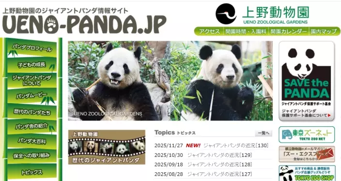 東京上野動物園的大熊貓受當地民眾歡迎。上野動物園網站圖片