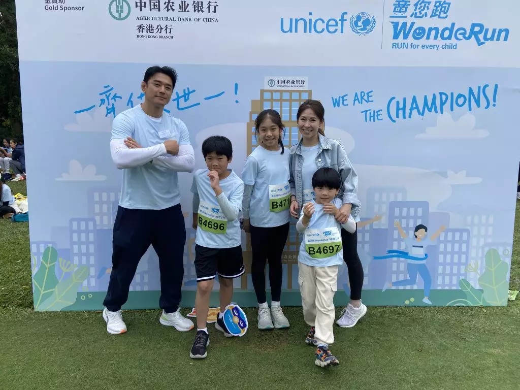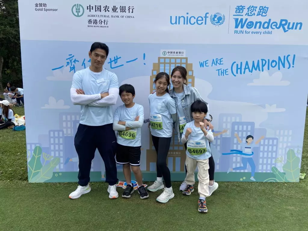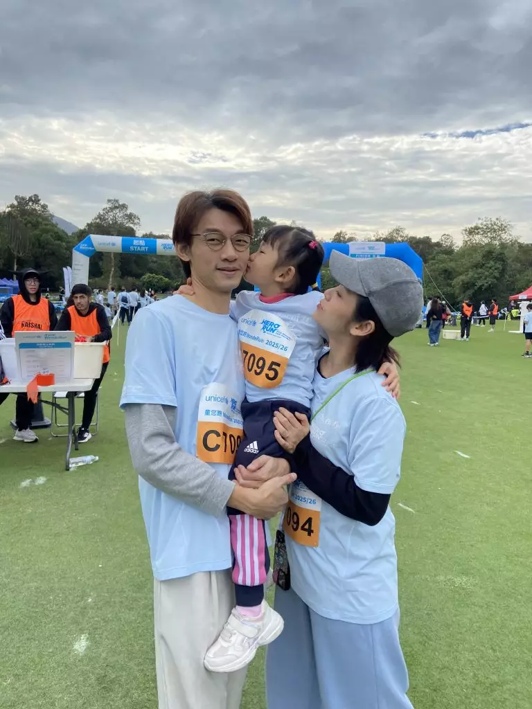 即將有新戲上映的陳湛文,抽空與女兒Nina及太太宋雯參加UNICEF慈善跑「童您跑」。
