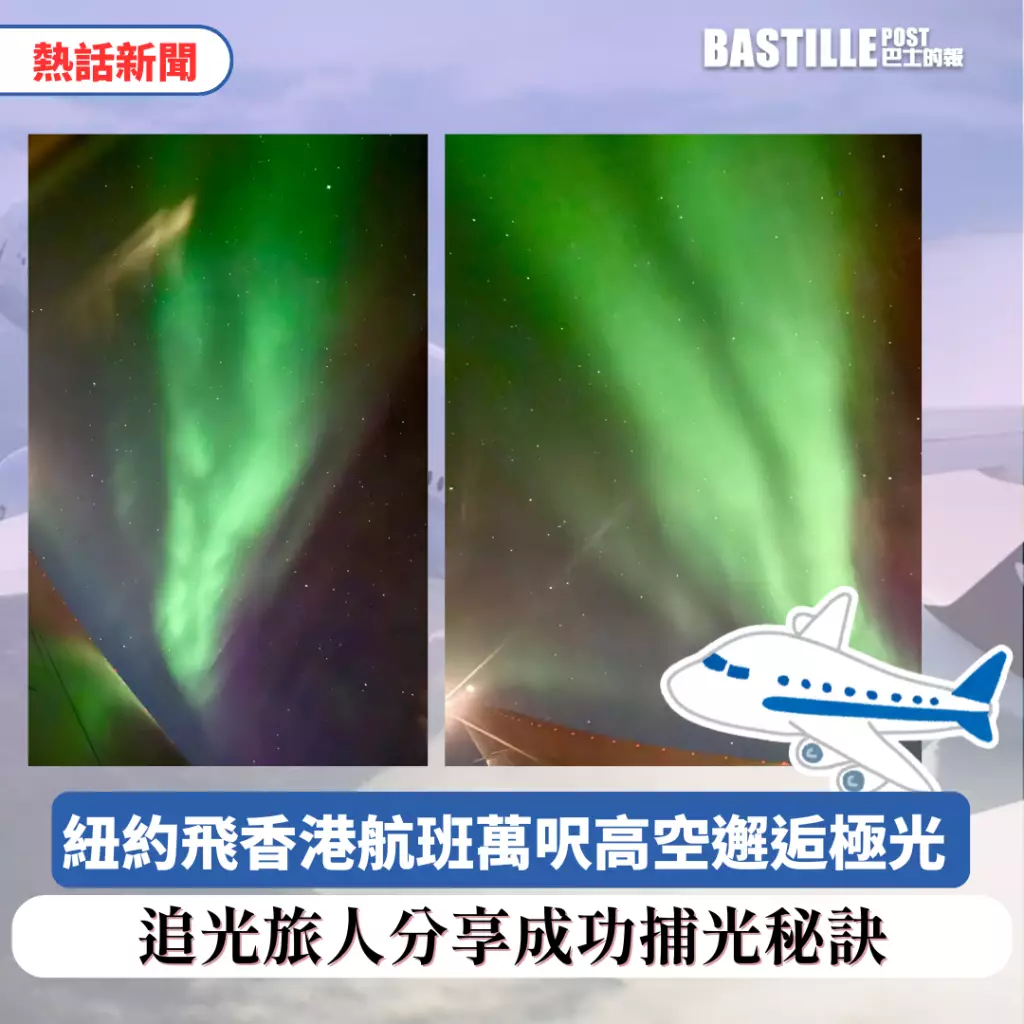 近日一名幸運旅客從美國紐約飛往香港的航班上,意外捕捉到極光奇觀,事後在社交平台分享拍攝秘技,引發網民熱議。