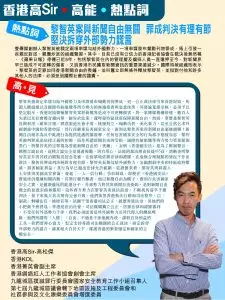 高SIR:黎智英罪成,這本是香港法治社會依法懲治危害國家安全犯罪行為的正常司法程序,法庭的審訊公開、公平、公正,經過總共多達156日的公開聆訊,審視了多達2,220項證物、超過80,000頁文件,14名控方證人的證詞,黎智英本人更出庭作供多達52天,黎智英和其他被告經過公平審訊後才被裁定有罪的清楚證明,法庭就本案頒下的裁決理由長達855頁,完全公開供公眾查閱,鉅細無遺地説明法庭對相關法律原則和證據的分析,以及裁定黎智英和三間被告公司有罪的理由。而整個審訊過程入面,都有外國領事館職員旁聽,是公平公開公正審訊的證人,相信外國領事很清楚成件事。外交部駐港公署亦致函駐港外媒,闡釋黎智英案真相。然而,英國、美國、澳洲、歐盟等多國政府及組織卻罔顧事實,大放厥詞,妄圖以無理要求干涉香港司法,其行徑令人不齒,必須予以堅決駁斥。一干人等無理指責香港對黎智英的檢控是出於政治動機,更荒謬地要求無條件釋放黎智英。他們聲稱黎智英因和平行使言論自由、投入新聞及民主信念而被定罪,還無端詆毀香港法治制度。然而,事實勝於雄辯,黎智英長期勾結外部勢力,妄圖破壞香港穩定、危害國家安全,其行為嚴重觸犯法律紅線,香港司法機關依法對其定罪,是維護國家安全和法律尊嚴的正義之舉。這些外部勢力竟荒謬要求無條件釋放黎智英,簡直是天大的玩笑。試問,在他們自己的國家,若有人勾結外部勢力危害國家安全,會無條件釋放嗎?答案顯然是否定的。他們以雙重標準對待香港司法案件,不過是打着「人權」「民主」的幌子,行干涉中國內政、破壞香港繁榮穩定之實。他們根本不尊重香港法庭基於事實和證據的獨立審判,拒絕正視裁決理由羅列的各項證據,肆意攻擊香港特區政府,這是典型的以政治凌駕法治、歪曲事實、顛倒是非。中國外交部發言人及特區政府發言人已明確表示,香港是法治社會,中央政府堅定支持特區依法維護國家安全、懲治危害國家安全的犯罪行為,而有關司法案件純屬香港特區內部事務,不容外部勢力置喙和干預。高SIR不禁懷疑,那些發聲聲援並提出荒謬要求的人和組織,很可能就是由始至今搗亂香港的外部勢力和黑手。他們妄圖通過干涉香港司法,破壞香港法治環境,進而達到其不可告人的政治目的。我們必須保持高度警惕,堅決抵制外部勢力的干涉,堅定支持香港司法機關依法履職,捍衛國家主權和香港法治尊嚴!