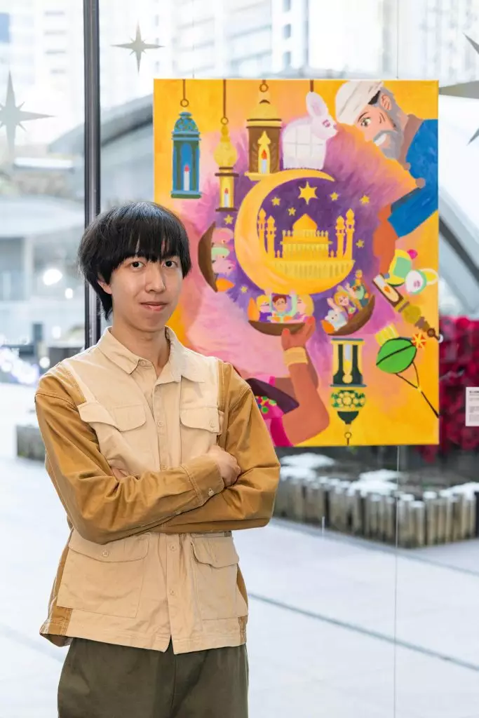 Matthew 兩歲時評定患有自閉症及輕度智障,在媽媽悉心照顧及陪伴下,培養出對藝術的濃厚興趣。此外他更是運動健將,曾於2013及2017年於特奧冬季世界賽速度滑冰獲得金牌。Matthew想透過畫作展示印度的排燈節及有香港特式的中秋節共同慶祝的景像,傳遞不同文化交流、互動與影響。